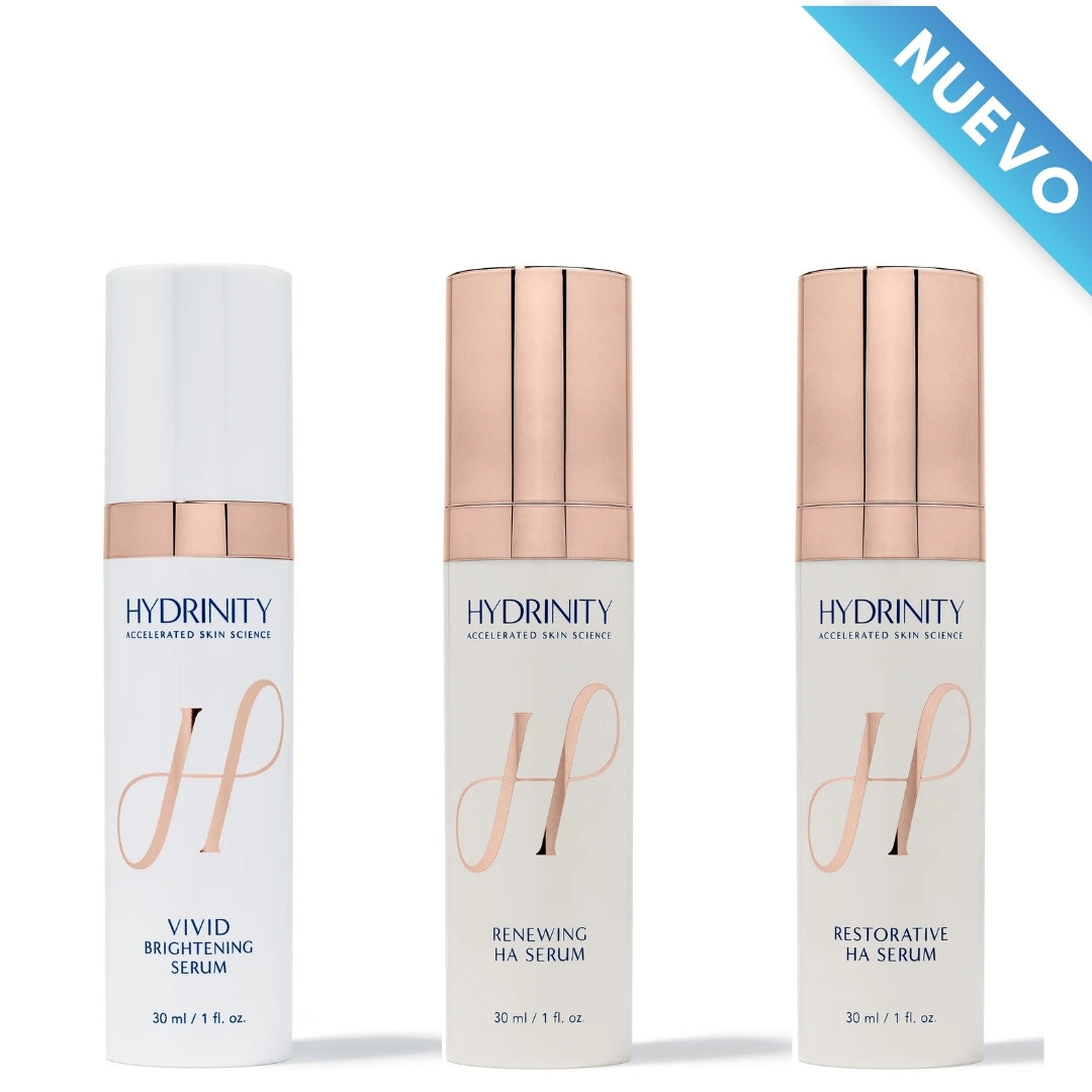 El Hydrinity Trio Serum Pack reúne tres de los serums más avanzados de la línea Hydrinity Accelerated Skin Science, formulados para transformar la piel gracias a moléculas de ácido hialurónico de última generación, péptidos biomiméticos y activos de reparación intensiva.